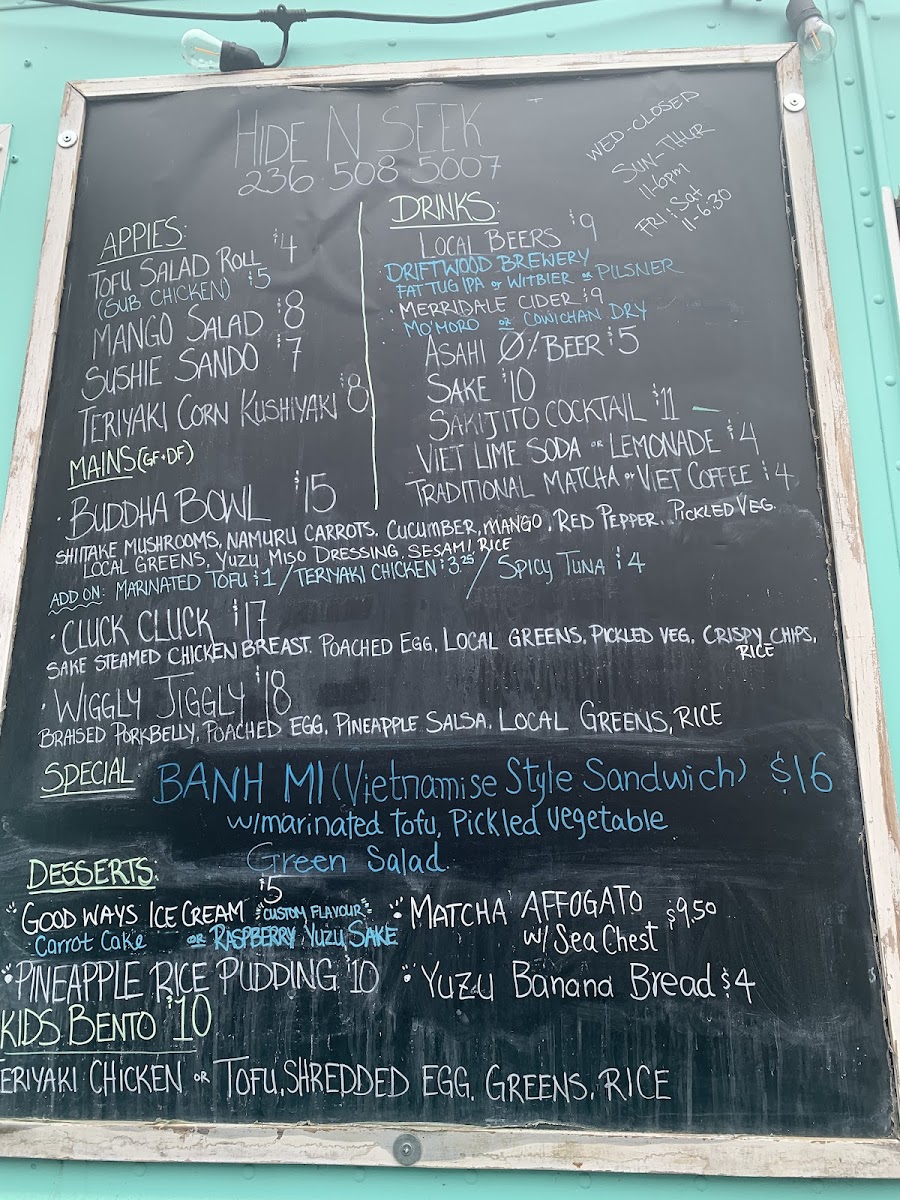 Welcome to Hide N Seek, a hidden gem nestled on 5611 East Sooke Road in beautiful Sooke, BC. This vibrant food truck offers a delightful fusion of flavors, making it a must-visit for both adventurers and locals alike. The menu features enticing options such as the Wiggly Jiggly Bowl, renowned for its fresh ingredients and impeccable presentation. Be sure to try the Mango Salad and Sushi Sando appies, perfect for sharing after a hike.